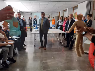 El delegado territorial de Empleo, Empresa y Trabajo Autónomo de la Junta en Granada, Javier Martín, ha asistido a la última fase del proyecto 'La fibra de los títeres' en el que el Centro Albayzín de Artesanía ha colaborado con el IES Hermenegildo Lanz, y en la que se validaba la labor de alumnos de FP que han creado cinco prototipos artesanales de fibra natural y un robot mecánico que serán los protagonistas de una obra.