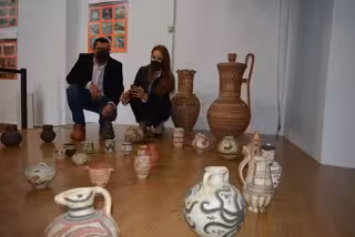 La delegada territorial de Empleo, Formación, Trabajo Autónomo, Transformación Económica, Industria, Conocimiento y Universidades de la Junta en Granada, Virginia Fernández, ha visitado la exposición de carácter didáctico con la que la Escuela de Formación Albayzín, con más de 60 piezas, celebra los Días Europeos de la Artesanía.