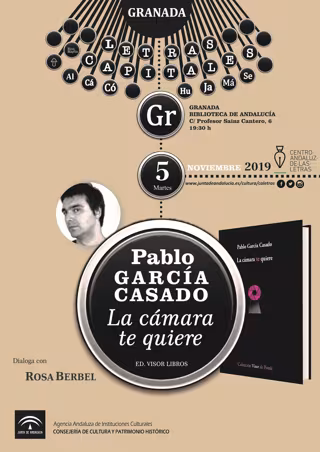 La Consejería de Cultura y Patrimonio Histórico, a través del Centro Andaluz de las Letras, presenta en Granada el poemario 'La cámara te quiere' (Visor Libros), de Pablo García Casado.