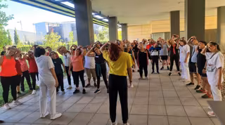 A continuación, y también en el exterior del hospital, se ha desarrollado una demostración de zumba, gracias a la colaboración de Sofía Orozco, monitora deportiva que ha colaborado en el evento.