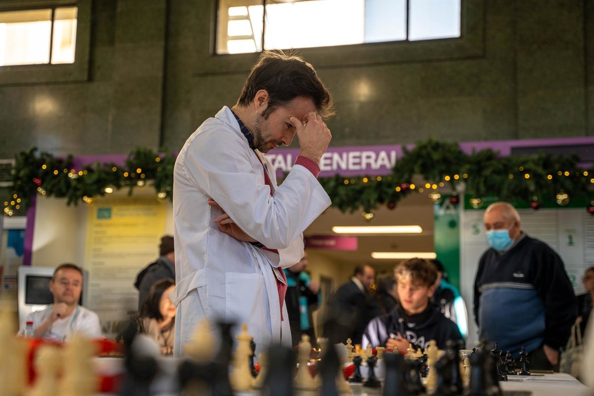 El Hospital Universitario Virgen de las Nieves de Granada ha organizado este jueves una partida simultánea de ajedrez en la que han participado usuarios y profesionales en un decorado con doce puestos con tableros, en una iniciativa impulsada por el médico de familia y actual especialista interno residente de Microbiología Enrique Rodríguez, el primer gran maestro internacional de Granada en este deporte.