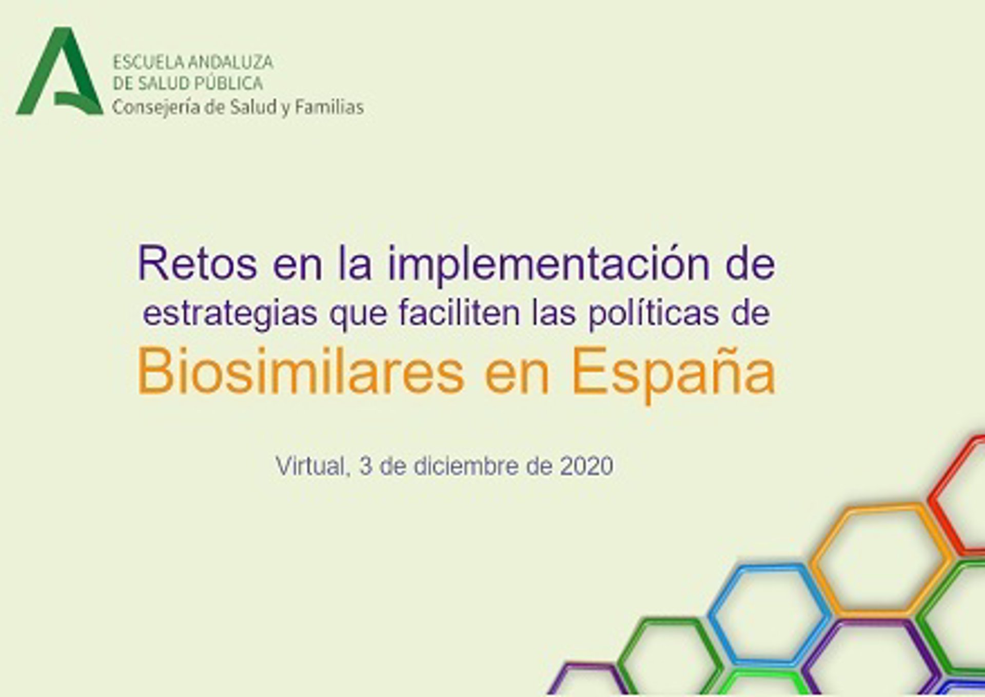 Representantes del Ministerio de Sanidad, académicos, y profesionales asistenciales y de la Asociación Española de Biosimilares, se dan cita en una jornada virtual de la Escuela Andaluza de Salud Pública (EASP), con sede en Granada, para analizar las claves de la implementación de los medicamentos biosimilares en el Sistema Nacional de Salud (SNS).