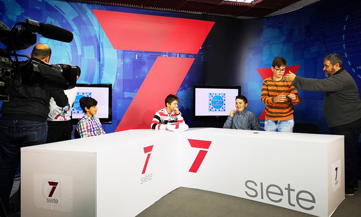 El Consorcio Fernando de los Ríos, entidad pública que gestiona la red Guadalinfo, ha permitido la grabación de un programa de televisión a un grupo de escolares de Albuñuelas, en la provincia de Granada, en el marco de su proyecto 'Peque periodistas 2.0'.