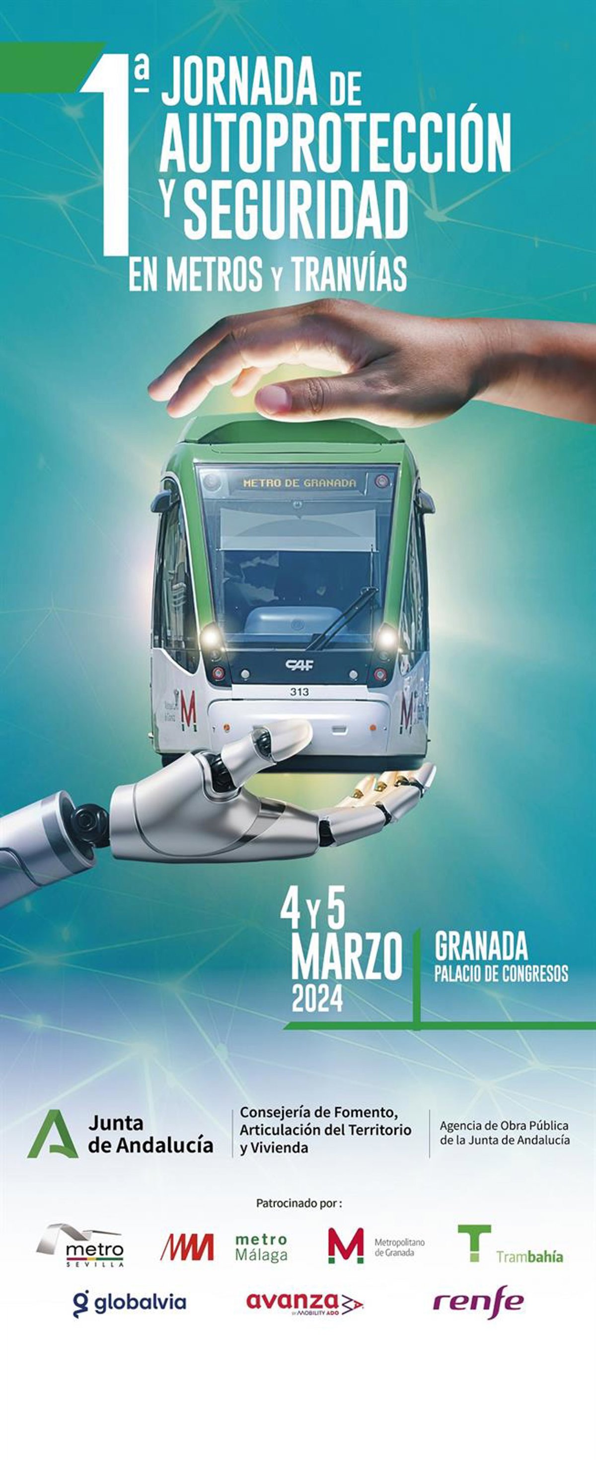 La ciudad de Granada acogerá las primeras Jornadas de Autoprotección y Seguridad en metros y tranvías en Andalucía, que se celebrarán el 4 y 5 de marzo en el Palacio de Congresos con la presencia de los principales operadores y gestores de los metros y tranvías españoles, y especial presencia de los gestionados por la Junta de Andalucía a través de la Agencia de Obra Pública, como son los metros de Sevilla, Málaga y Granada y el Tranvía de la Bahía de Cádiz (Trambahía).