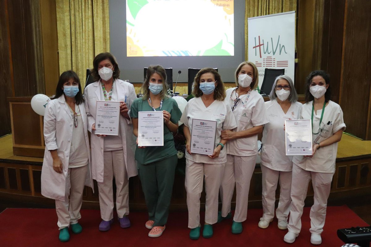 El acto de entrega de los diplomas acreditativos ha estado presidido por el delegado de Salud y Consumo de la Junta en Granada, Indalecio Sánchez-Montesinos, la directora de la Estrategia de Cuidados, Nieves Lafuente, la directora gerente del hospital, María Ángeles García Rescalvo y la directora de Enfermería, Yolanda Mejías.