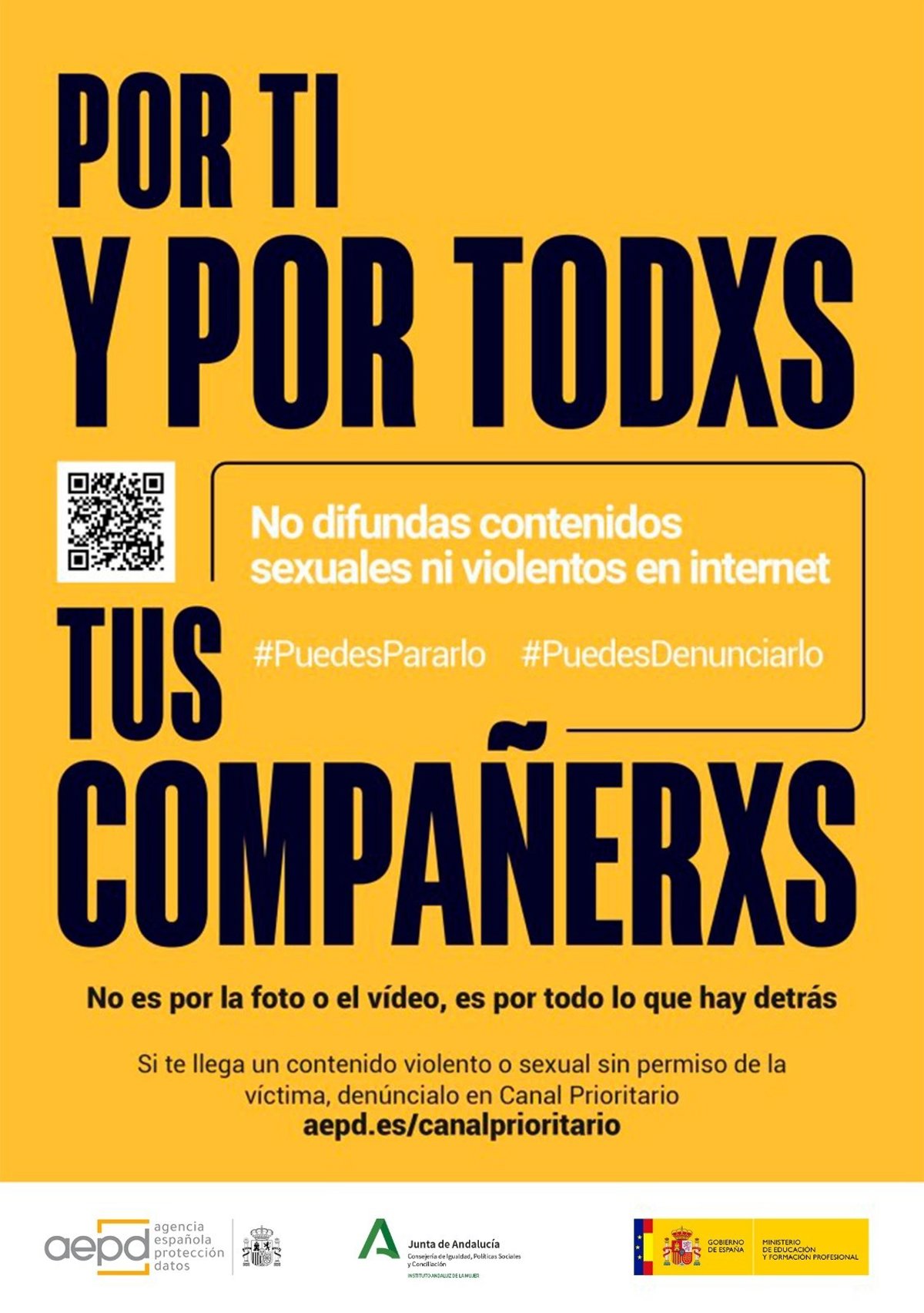 Frenar la difusión de material sexual y violento por Internet y redes sociales es el principal objetivo que ha unido al Instituto Andaluz de la Mujer (IAM) y la Agencia Española de Protección de Datos (AEPD) para lanzar la campaña contra la ciberviolencia de género #PuedesPararlo, con la finalidad de dar a conocer el Canal Prioritario. Se trata de una herramienta para la retirada del contenido sexual y violento, especialmente dirigido contra las mujeres, que se ha obtenido y distribuido sin consentimiento a través de Internet y las redes sociales.