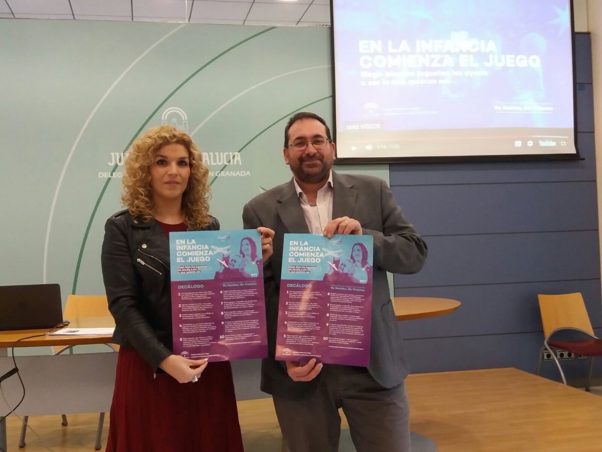La coordinadora del Instituto Andaluz de la Mujer en la provincia, Ana Belén Palomares, y el delegado de Educación de la Junta en Granada, Germán González, han presentado la campaña coeducativa anual del juego y el juguete no sexista y no violento 2017-2018, una iniciativa que cada año lanza el IAM antes de las fechas navideñas, con el fin de "promover en las familias la compra responsable" de regalos para los niños.