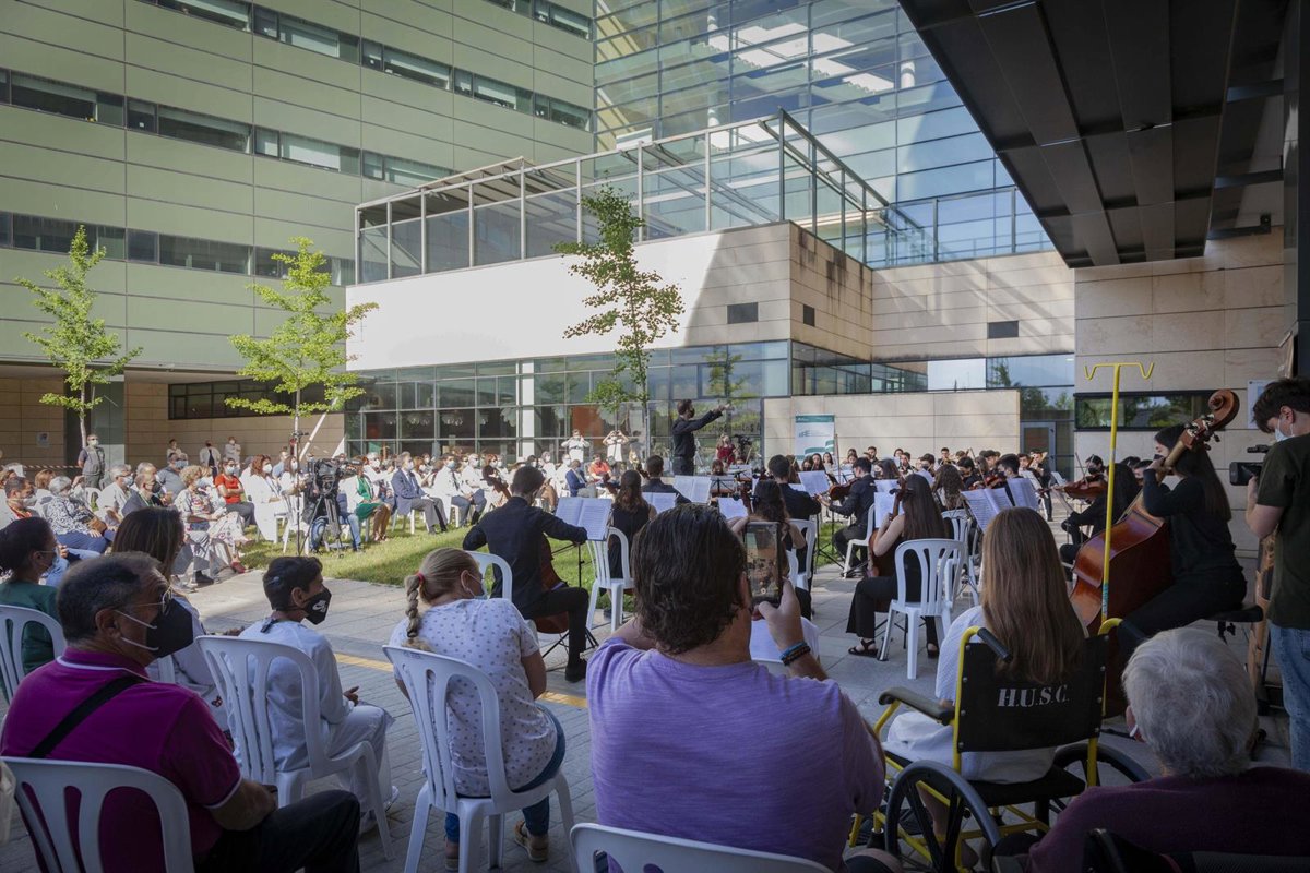 La Joven Orquesta Sinfónica de Granada ha rendido homenaje este martes en el Hospital Universitario Clínico San Cecilio, en el Parque Tecnológico de la Salud, a los pacientes que han sufrido la covid-19, así como a los profesionales que los han atendido.