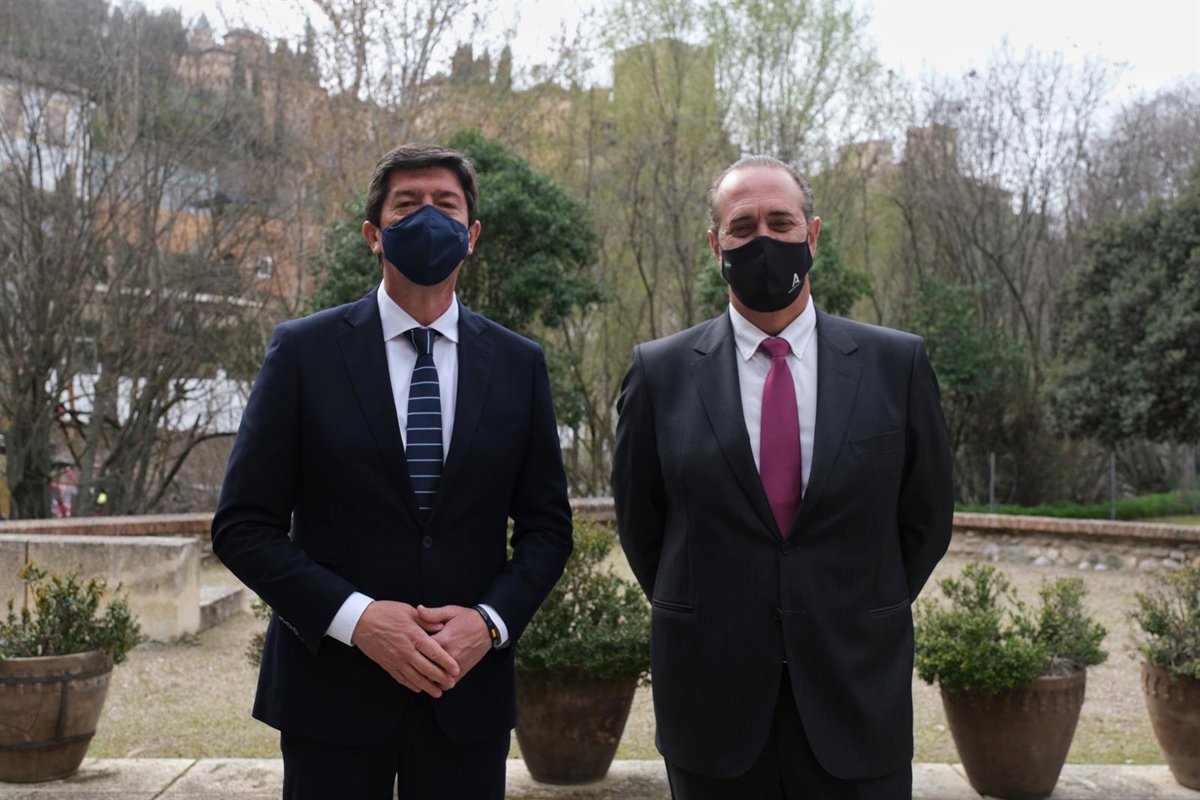 El consejero de Turismo, Regeneración, Justicia y Administración Local, Juan Marín, y el delegado del ramo en Granada, Enrique Barchino. - JUNTA DE ANDALUCÍA