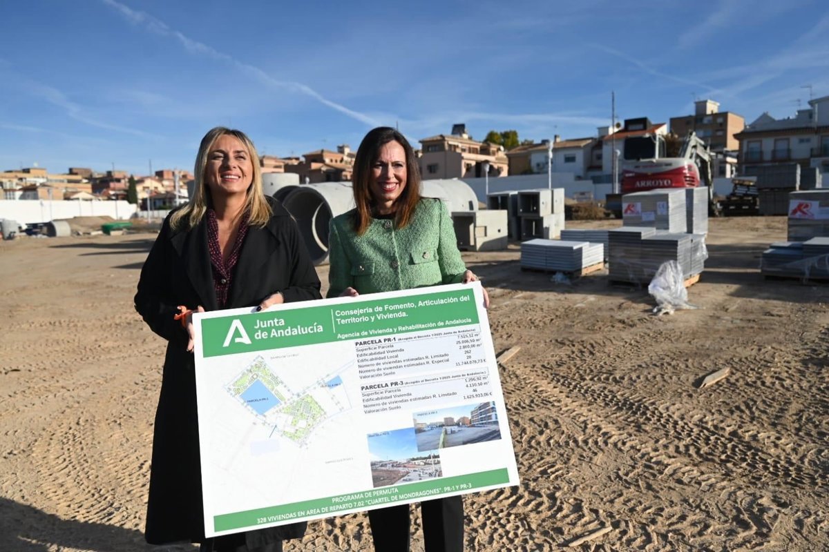 La titular de Fomento ha añadido que "desde 2019 el Gobierno de Juanma Moreno viene apostando por este sistema de permuta de suelos por viviendas, para dar salida a suelos de titularidad pública, que durante décadas han permanecido en desuso, y que ahora acogerán a nuevas promociones residenciales".
