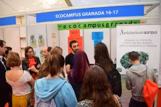 La delegada de Medio Ambiente y Ordenación del Territorio de la Junta en Granada, Inmaculada Oria, ha presentado este miércoles el programa participativo para la comunidad universitaria Ecocampus 2016-2017 que persigue concienciar en el respeto al entorno natural desde su expositor en las Jornadas de Recepción del Estudiante de la Universidad de Granada.