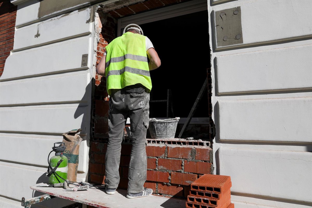 Un trabajador coloca ladrillos en una fachada en Madrid, en una imagen de archivo. - Jesús Hellín - Europa Press - Archivo