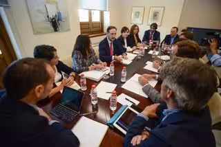 Felipe López ha informado a los periodistas de esta línea de gestión tras reunirse con representantes del sector de la construcción y de colegios profesionales de la provincia para presentarles los dos instrumentos con los que cuenta su departamento para la ejecución de obra pública en el horizonte de 2020, como son el Plan de Vivienda y Rehabilitación y el Plan de Infraestructuras para la Sostenibilidad del Transporte en Andalucía (Pista 2020).