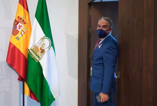 Rueda de prensa del consejero de la Presidencia, Administración Pública e Interior y portavoz del Gobierno andaluz, Elías Bendodo, tras la reunión semanal del Consejo de Gobierno, a 19 de octubre del 2020. En el Palacio de San Telmo, Sevilla (Andalucía) - Eduardo Briones - Europa Press
