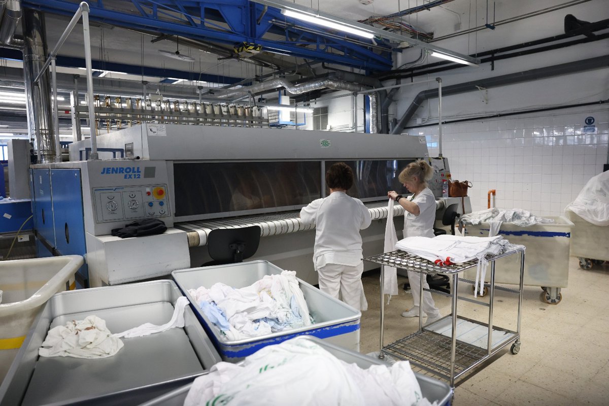 En este amplio espacio industrial, ubicado en la parte posterior del Hospital de Neurotraumatología y Rehabilitación, trabajan 90 profesionales de distintas categorías --lavanderas, pinches y costureras-- que se distribuyen en las distintas áreas de trabajo. Además, este servicio cuenta con pinches de lencería que hacen la entrega diaria a los distintos servicios de los centros sanitarios, así como con los técnicos de mantenimiento, conductores de logística y profesionales de limpieza.