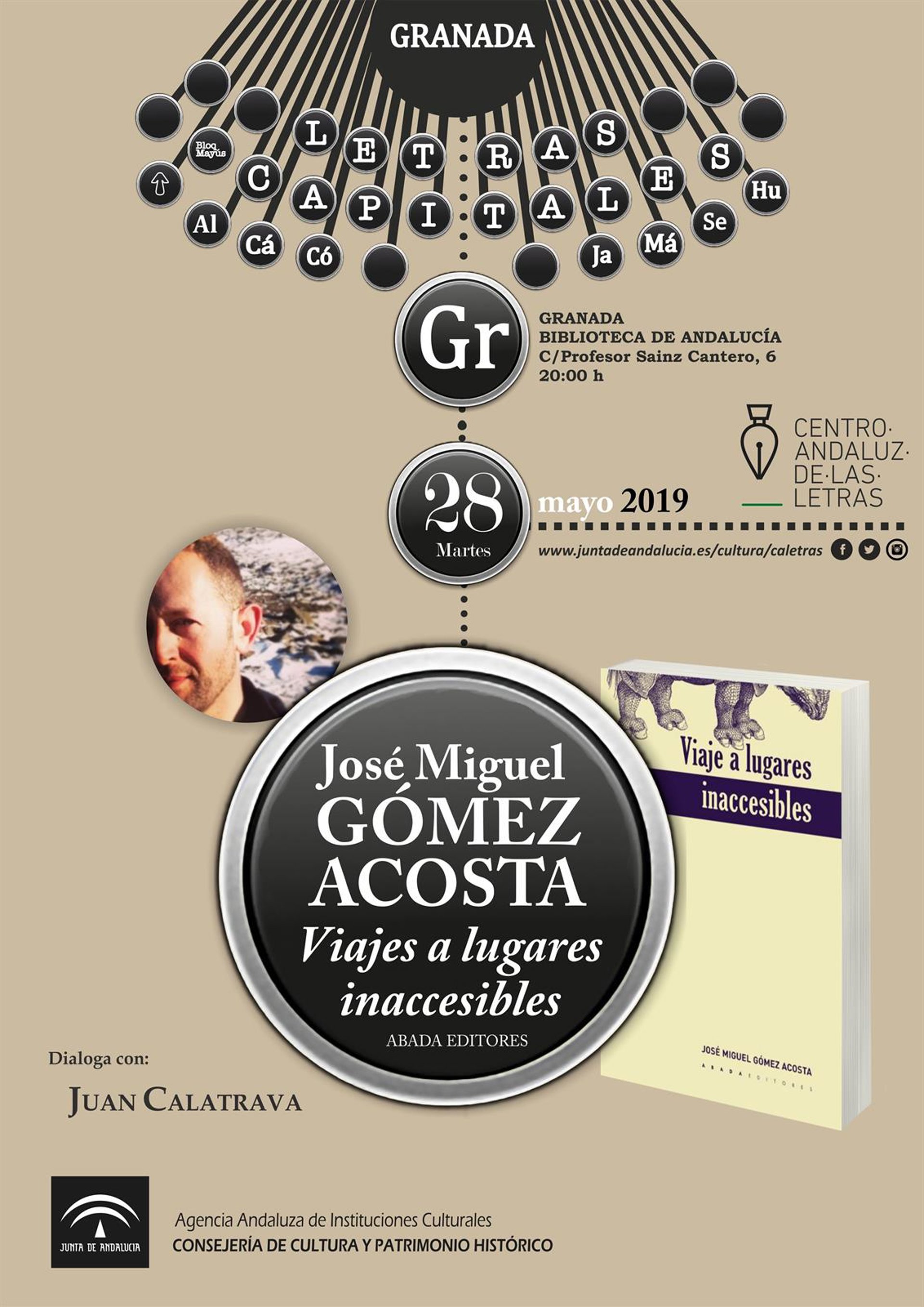 La Consejería de Cultura y Patrimonio Histórico, a través del Centro Andaluz de las Letras, presenta el libro-collage 'Viaje a lugares inaccesibles', de José Miguel Gómez Acosta, dentro del ciclo Letras Capitales, editado por Abada Editores, este martes a las 20,00 horas en la Biblioteca de Andalucía, con la colaboración del que fue director de la Escuela de Arquitectura, Juan Calatrava.