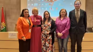 Raquel Jiménez, en el centro, posa con la presidenta de la asociación Parkinson y directivos del hospital. - JUNTA DE ANDALUCÍA