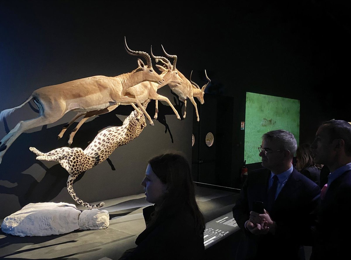 La pieza base, el leopardo, es la que hace de contrapeso y soporta el peso de los impalas. El resultado es una escultura naturalizada de cinco metros de largo por dos de ancho y 2,5 de alto, según ha informado el Parque de las Ciencias, cuyo director, Luis Alcalá, estuvo invitado por la organización para representar a la entidad en la apertura de la muestra, que se mantendrá abierta hasta el 7 de enero de 2024.