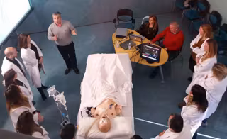 En salas de cuidados intensivos con equipamiento real, los profesionales abordan las técnicas de detección de la muerte encefálica, evaluación y mantenimiento del donante, donde deben evitar que se deterioren los órganos del paciente, en este caso un robot de última generación. Su actuación es retransmitida al aula para que el resto de los compañeros pueda analizarla.