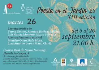 La decimotercera edición de las veladas poético musicales de 'Poesía en el Jardín' finaliza este martes tras el éxito alcanzado en las tres sesiones anteriores, cerrándose así un ciclo que en esta ocasión se ha celebrado en el Cuarto Real de Santo Domingo de Granada y que para esta última jornada ampliará su aforo a 350 butacas debido al interés suscitado.