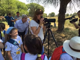 "Es importante profundizar sobre el terreno en los conceptos que se han visto en los colegios, para que los alumnos se familiaricen con los ecosistemas de Marismas del Odiel y las dificultades para la reintroducción del águila pescadora", ha explicado Rocío Jiménez después de la visita a la zona de El Acebuchar. Los escolares del 'Reyes Católicos' han realizado allí actividades en grupo y han visto el primero de los nidos habilitados para la recuperación del águila pescadora en la Península Ibérica.