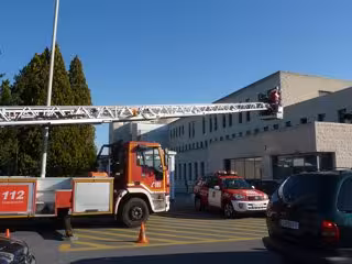 Efectivos de la Unidad de Rescate del Servicio de Extinción de Incendios del Ayuntamiento de Huelva han sido los encargados este miércoles de ayudar a Papá Noel a acceder, desde el exterior, a las instalaciones de la Unidad de Pediatría del Hospital Juan Ramón Jiménez, perteneciente al Complejo Hospitalario Universitario de Huelva, con el fin de poder llevar a los niños que se encuentran hospitalizados y a los pacientes del área de Oncología un pequeño obsequio y, sobre todo, "mucha ilusión y esperanza en fechas tan señaladas".