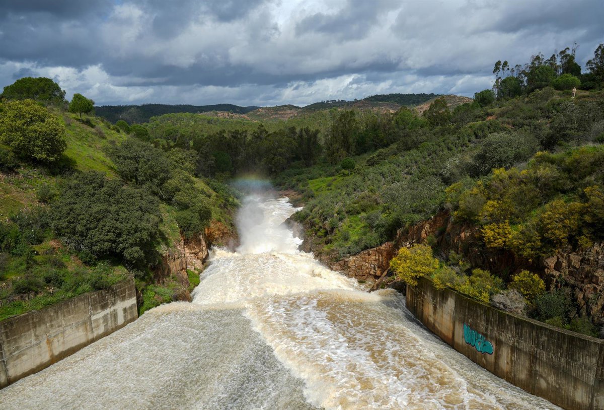 Archivo - Imagen de la presa del Corumbel desaguando en marzo de 2025. - Francisco J. Olmo - Europa Press - Archivo