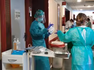 Atención en una planta Covid en el Hospital Universitario Juan Ramón Jiménez de Huelva - HOSPITAL JUAN RAMÓN JIMÉNEZ - Archivo