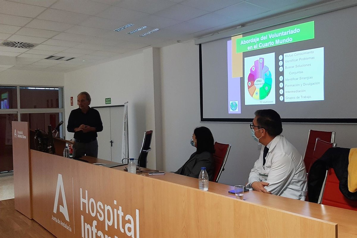 El encargado de hacer la presentación de este proyecto entre el colectivo médico del hospital ha sido el doctor Ignacio Suárez, jefe de la Unidad de Enfermedades Infecciosas del centro hospitalario durante muchos años, hoy ya jubilado. Le ha acompañado durante el acto la presidenta del Colegio de Médicos de Huelva, Mercedes Ramblado, que animó a los facultativos presentes a sumarse a este proyecto y a poner "su granito de arena" para mejorar las condiciones de vida de esta parte de la población que reside en la provincia de Huelva.