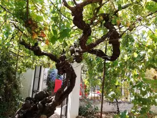 El ejemplar de parra en cuestión supera los dos metros de altura y los cinco de ramaje gracias al emparrado de barras de hierro que la corona y que data de al menos el siglo XIX.