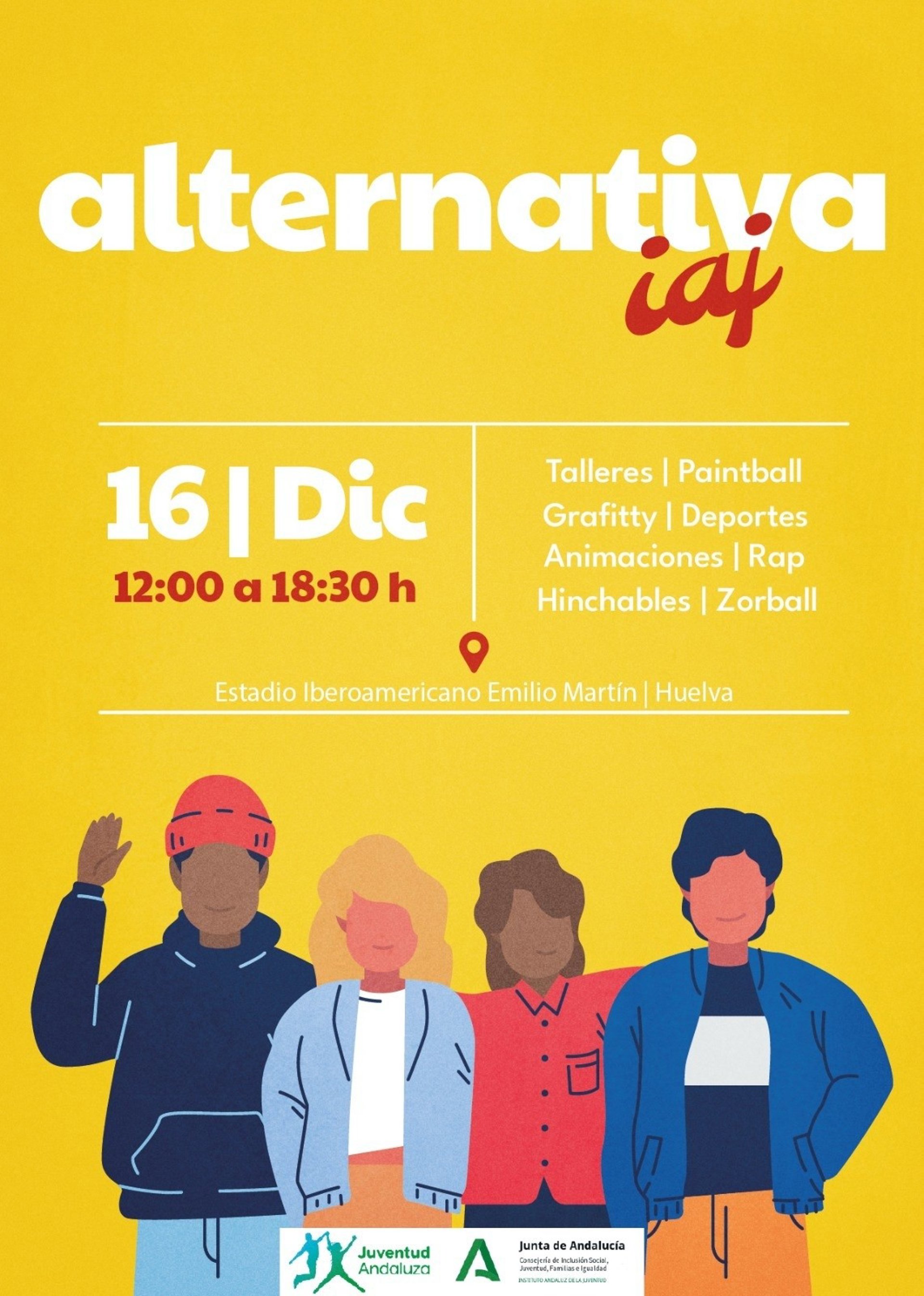 La Junta de Andalucía financia el evento 'Alternativa IAJ' en el que se ofrece a la juventud andaluza talleres, deportes, hinchables y animaciones, desde las 12,00 hasta las 18,30 horas de la tarde. En la organización del encuentro colabora la Federación Andaluza de Centros Juveniles El Patio, integrada en la Confederación Nacional 'Don Bosco'.