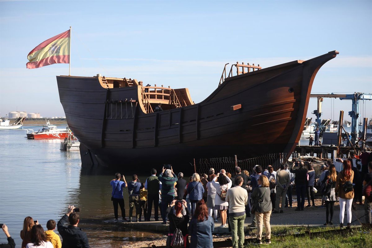 La nave se remolcará en los próximos días por el río Guadalquivir hasta Sevilla, donde se le instalarán sus palos, jarcias, velas y contenidos expositivos. El público podrá subir a bordo del barco para recorrer las cubiertas y conocer las claves de su navegación.