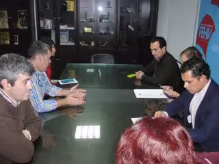 El director general de Comercio de la Junta, Raúl Perales, la consejera delegada de Extenda, Vanessa Bernard, y el delegado territorial de Conocimiento y Empleo, Manuel Ceada, han mantenido un encuentro en Valverde del Camino (Huelva) con representantes de la Asociación Provincial de Industriales del Calzado (Apical), donde ha mostrado "su compromiso firme" para solucionar las necesidades más urgentes con las que cuenta el sector en la provincia.