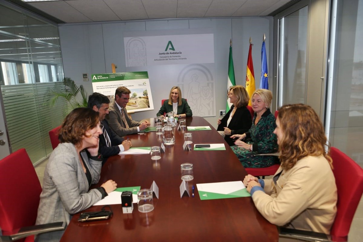 Junto a la consejera y el alcalde han estado presentes en la firma del convenio la secretaria general de Vivienda, Alicia Martínez; la directora general de Vivienda y Regeneración Urbana, Eloísa Cabrera; y el delegado de Fomento de la Junta en Huelva, José Manuel Correa.