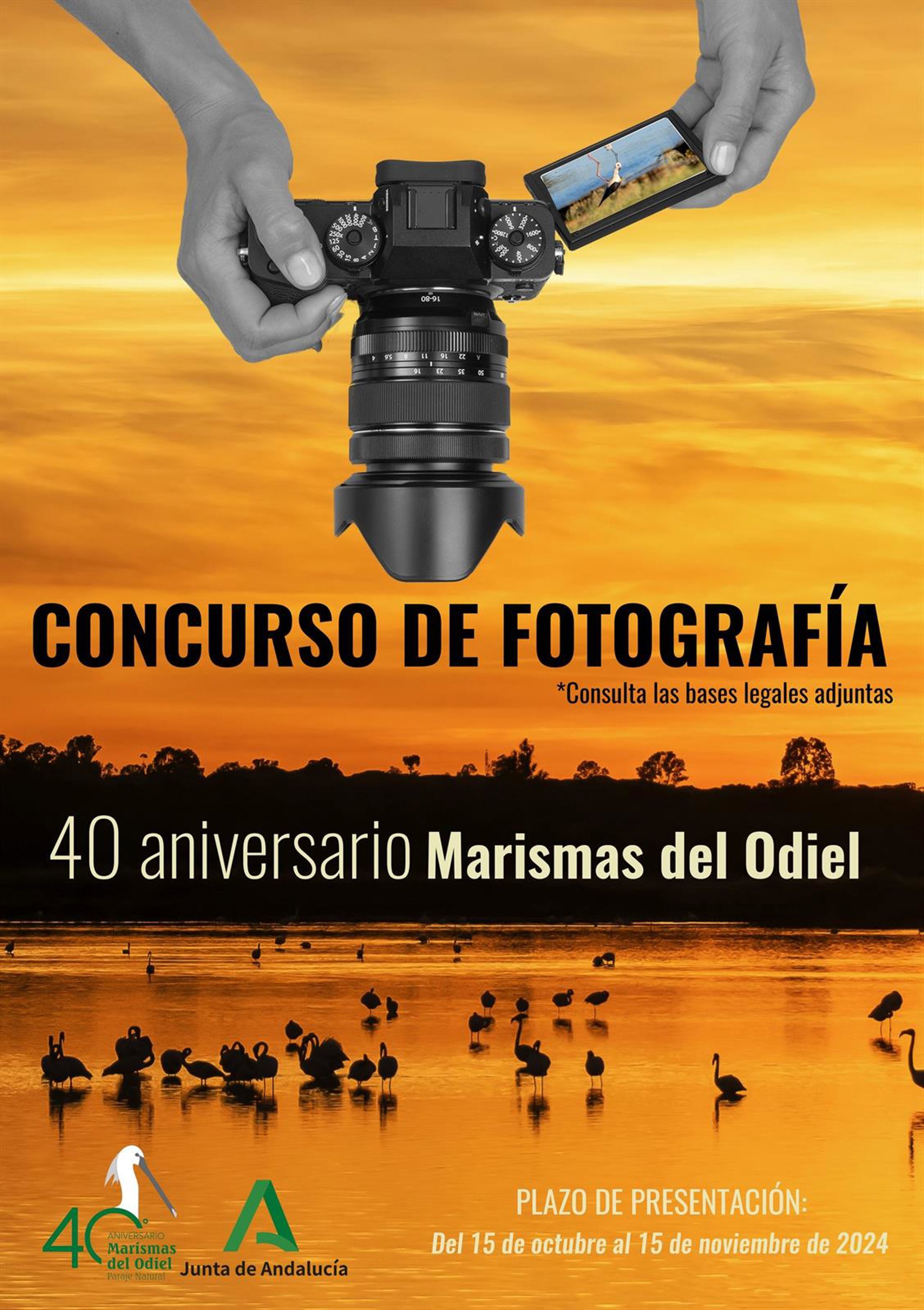 Cartel del concurso de fotografía por el 40 aniversario de Marismas del Odiel (Huelva). - JUNTA DE ANDALUCÍA