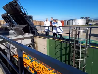 El delegado de la Junta en Huelva, Francisco Romero, junto al delegado territorial de Agricultura, Pesca y Desarrollo Rural, Pedro Pascual Hernández; el gerente provincial de la Agencia IDEA, Miguel Ángel Mejías, y la alcaldesa, Dolores Ruiz, ha realizado una visita a la planta de producción de Cítricos del Andévalo (García Carrión) en Villanueva de los Castillejos, empresa beneficiaria de estas ayudas en la provincia, además de Riotinto Fruit, Arofa y El Pozo, ha informado la Junta en una nota.
