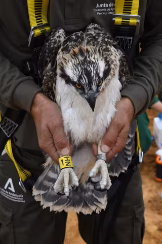 Anillamiento de ejemplar de águila pescadora en el paraje Marsimas del Odiel de Huelva. - JUNTA DE ANDALUCÍA