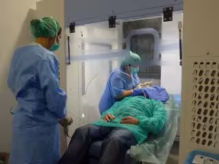 La 'Sala Blanca' está dotada de un equipo técnico denominado 'Arco Estéril', que hace de esta estancia una instalación con las ventajas de tener un ambiente estéril similar al que proporciona un quirófano y la versatilidad de una consulta, siendo uno de los primeros centros a nivel nacional que ha contado con este equipamiento.