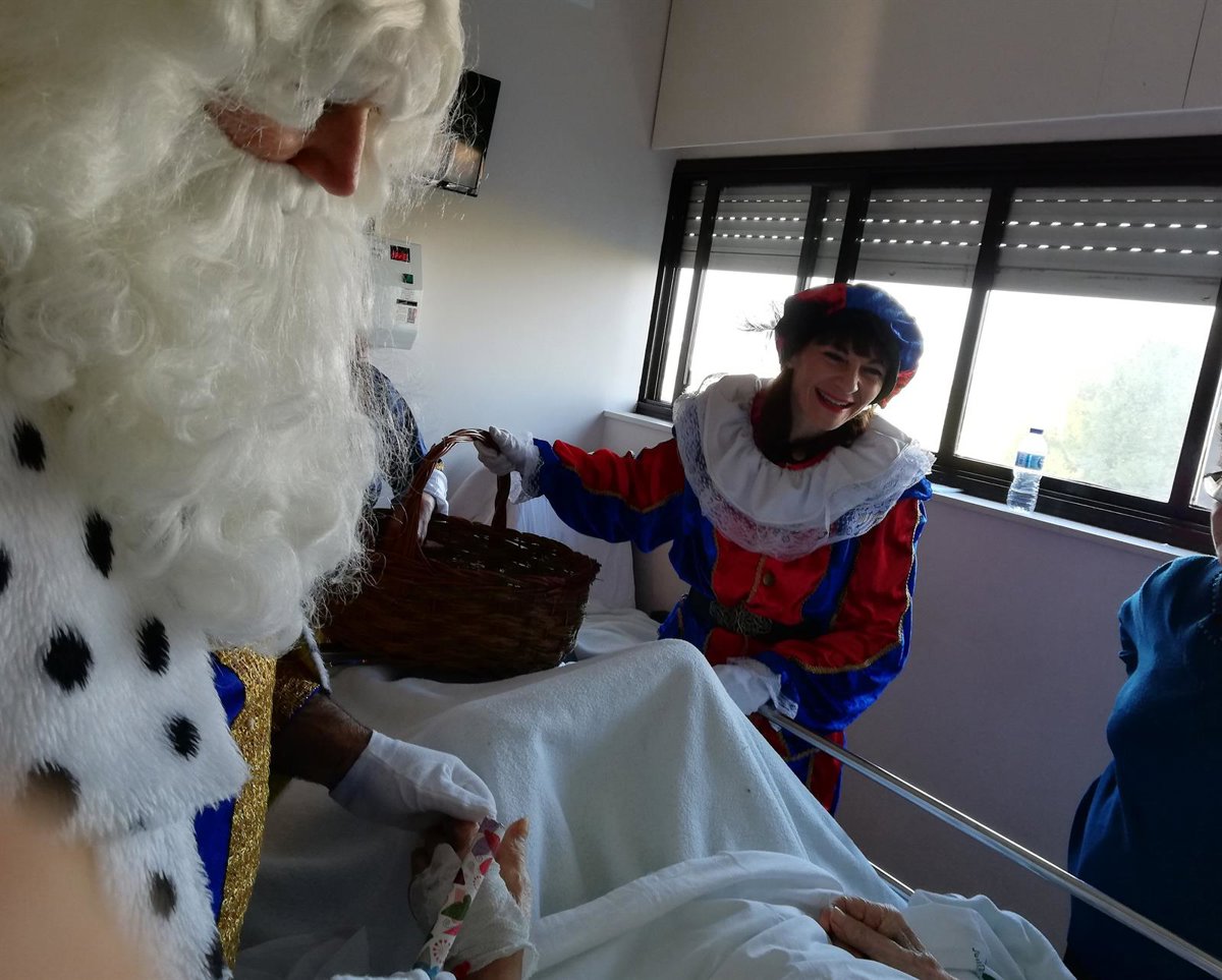 La comitiva real, con sus reyes y sus pajes, está integrada por un grupo de profesionales del centro hospitalario y recorre desde primera hora de la mañana las habitaciones del centro para llevar un poco de la alegría y de la magia de la Navidad a las personas que se encuentren ingresadas durante estas entrañables fiestas, así como a sus familias y acompañantes.