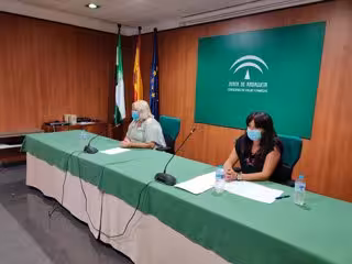 Imagen de archivo de las delegadas de Salud y Familias y de Educación y Deportes en Huelva, Manuela Caro y Estela Villalba, en rueda de prensa. - JUNTA DE ANDALUCÍA