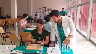 Por su parte, las experiencias prácticas con material de taller y con material orgánico inerte que reproduce de forma similar algunas de las características de los músculos y las articulaciones humanas, ha permitido a los alumnos poder trabajar en la adquisición de habilidades manuales y reproducir repetidamente la técnica en vivo de forma totalmente inocua y con la presencia y tutorización continua de los profesionales del Complejo Hospitalario Universitario de Huelva.