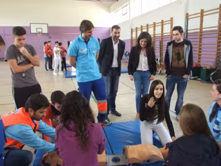La delegada de Educación de la Junta en Jaén, Yolanda Caballero, ha participado en los talleres de primeros auxilios enmarcados dentro del programa educativo 'Forma Joven', en los que 150 alumnos de primero de Bachillerato del instituto de Enseñanza Secundaria Jabalcuz de la capital han realizado simulaciones de animación cardiorrespiratoria y otras técnicas de primeros auxilios.