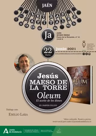 La Consejería de Cultura y Patrimonio Histórico, a través de la Agencia Andaluza de Instituciones Culturales, finaliza este martes en Jaén el ciclo de Letras Capitales con la presentación de la nueva novela de Jesús Maeso de la Torre, 'Oleum. El aceite de los dioses', publicada por Harper Colins.