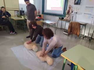 Junto a ello, a petición del AMPA Orospedana, se ha desarrollado un taller en IES Fernando Marín de Siles, con una primera parte teórica sobre actuaciones ante algunas urgencias, RCP básica y funcionamiento de DESA. Esta formación se ha llevado a cabo por tres miembros de la Unidad de Gestión Clínica, tras la que los participantes han podido practicar lo aprendido, reforzando sus conocimientos.