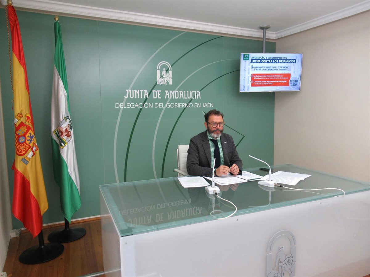Así lo ha señalado este jueves el delegado territorial de Fomento y Vivienda, Rafael Valdivielso, quien ha presentado el citado proyecto de ley aprobado recientemente por el Gobierno andaluz y que viene a reforzar las medidas para luchar contra los desahucios, ampliar la protección de las familias frente a las ejecuciones hipotecarias y las daciones en pago en la comunidad autónoma.