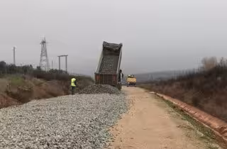 La Consejería de Fomento y Vivienda, responsable de la ejecución del ramal de conexión ferroviaria Vadollano-Linares ha comenzado ya los trabajos para la instalación de las vías en trazado con la extensión de la capa de balasto sobre la plataforma, lo que se considera el trabajo previo a la instalación de las vías en el trazado.