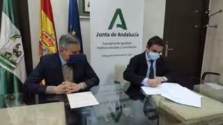 El delegado territorial de Igualdad, Políticas Sociales, Conciliación, Educación y Deporte, Antonio Sutil, ha asistido a la firma del convenio por el que se conciertan siete plazas en el Centro de Día Ocupacional para Discapacitados Psíquicos de Porcuna 'Molinillo Viejo'.