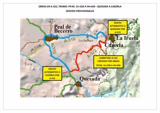 La carretera A-322 quedará cortada al tráfico de forma temporal entre el 27 y el 29 de mayo, con motivo de las obras de mantenimiento de firme que se ejecutan en esta vía que une Cazorla y Quesada (Jaén).