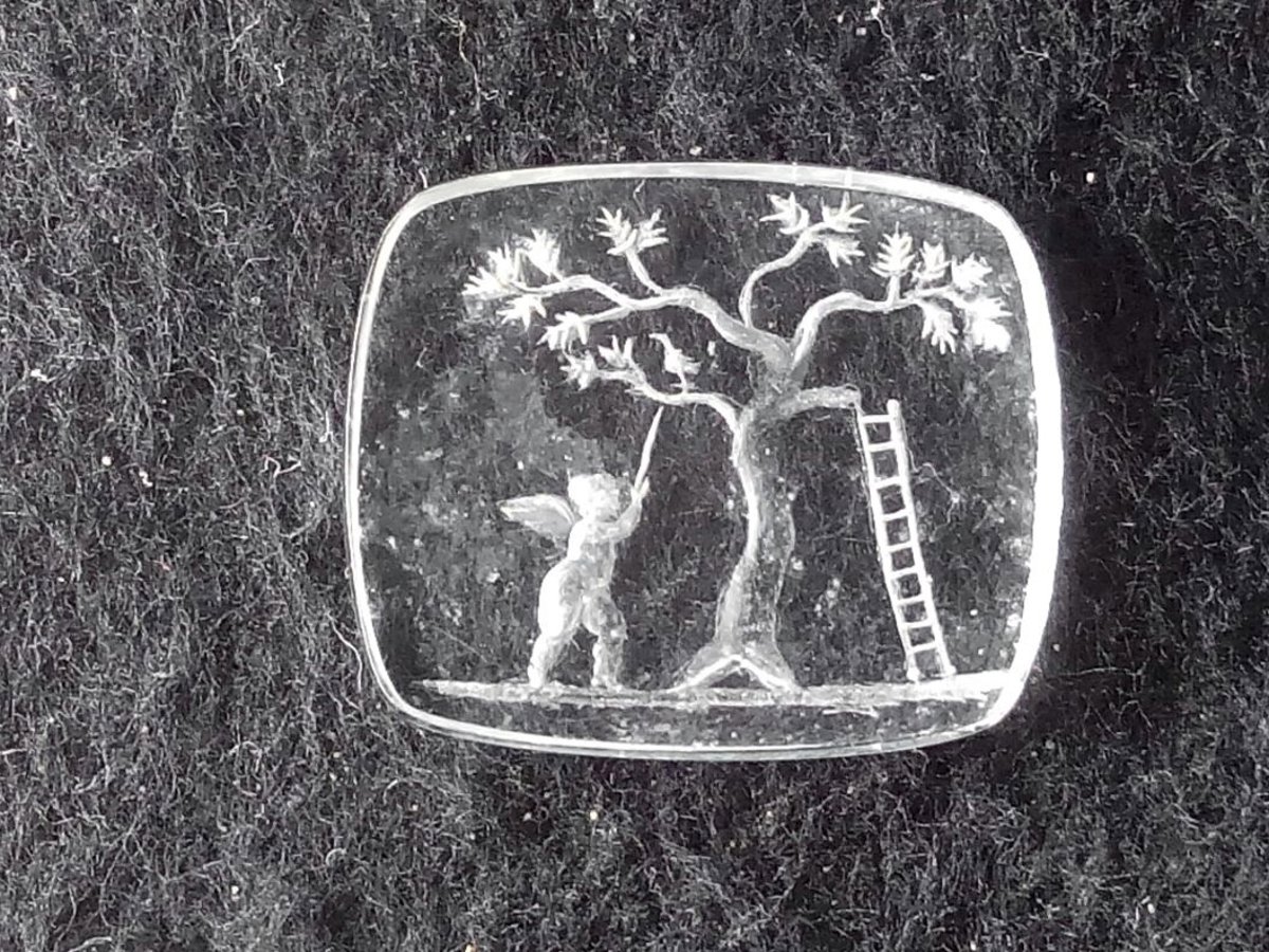La delegada territorial de Educación, Cultura y Deporte, Yolanda Caballero, ha señalado, durante su visita este miércoles al I Campo Internacional de Trabajo 'Cástulo, Puerto de Encuentros', que se trata de un muestra excelente de la joyería de los siglos I y II. "Pese a ser una pieza muy pequeña, podemos apreciar como en el cristal de roca hay grabado un dios alado del amor que intenta alcanzar con su vara la parte superior de un árbol y junto a él se apoyan unas escaleras en las ramas de este", ha destacado.