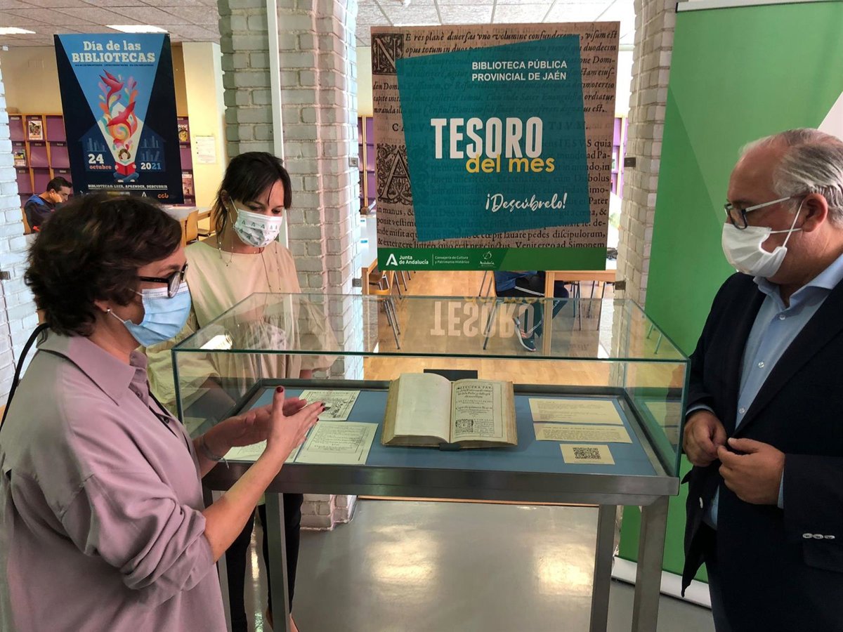 La Consejería de Cultura y Patrimonio Histórico conmemora el Día Internacional de las Bibliotecas con la apertura de un nuevo ciclo para dar a conocer el patrimonio bibliográfico de la Biblioteca Publica Provincial de Jaén. Desde este lunes se puede visitar la muestra 'Tesoro del mes' que irá exhibiendo documentos históricos de interés para el estudio, conocimiento y divulgación de la cultura e historia de la provincia.